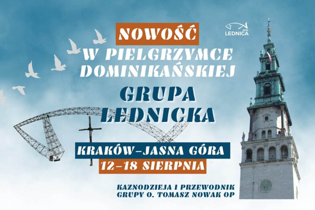 Powędrujmy Zawsze w górę, a konkretnie na Jasną Górę! W dniach 12-18 sierpnia w ramach Pielgrzymki Dominikańskiej, z Krakowa wyruszy po raz pierwszy Grupa Lednicka. Kaznodzieją i przewodnikiem będzie o. Tomasz Nowak OP. W Roku Jubileuszowym trwającym pod hasłem: Pielgrzymi